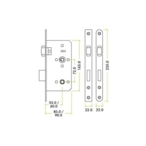 Includes lever handles, mortice lock case, strike plate and blanking plate with ‘Lift Handle to Lock’ text