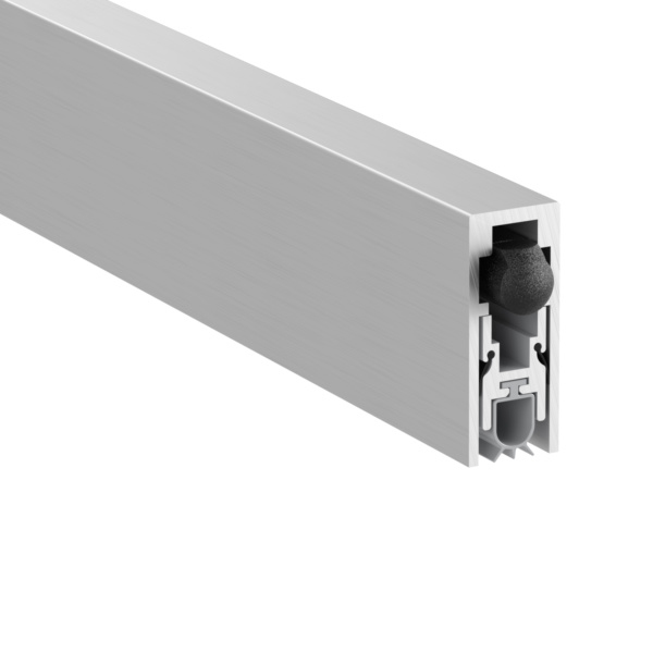 A slimline, mortised automatic drop seal. It features a high efficiency mechanism, which lifts the seal clear of the floor as soon as the door is opened by a few millimetres; resulting in lower door operating forces. Requires no power connection. Self-levelling on uneven floors; seal height can be adjusted independently of fixing screws.