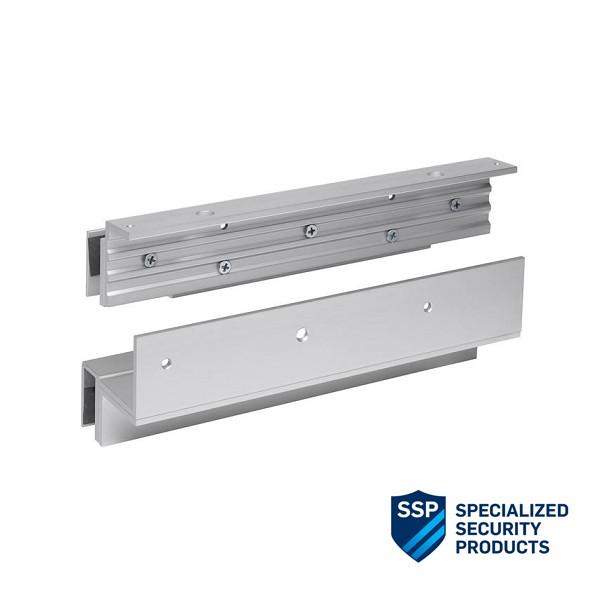 In StockFully adjustable Z & L bracket set for slim maglocks to a plate glass door and header panel and is suitable for inward opening doors.