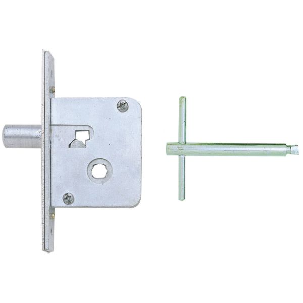 In StockA budget lock, operated with a T-key. Suitable for cupboard doors where low security is required